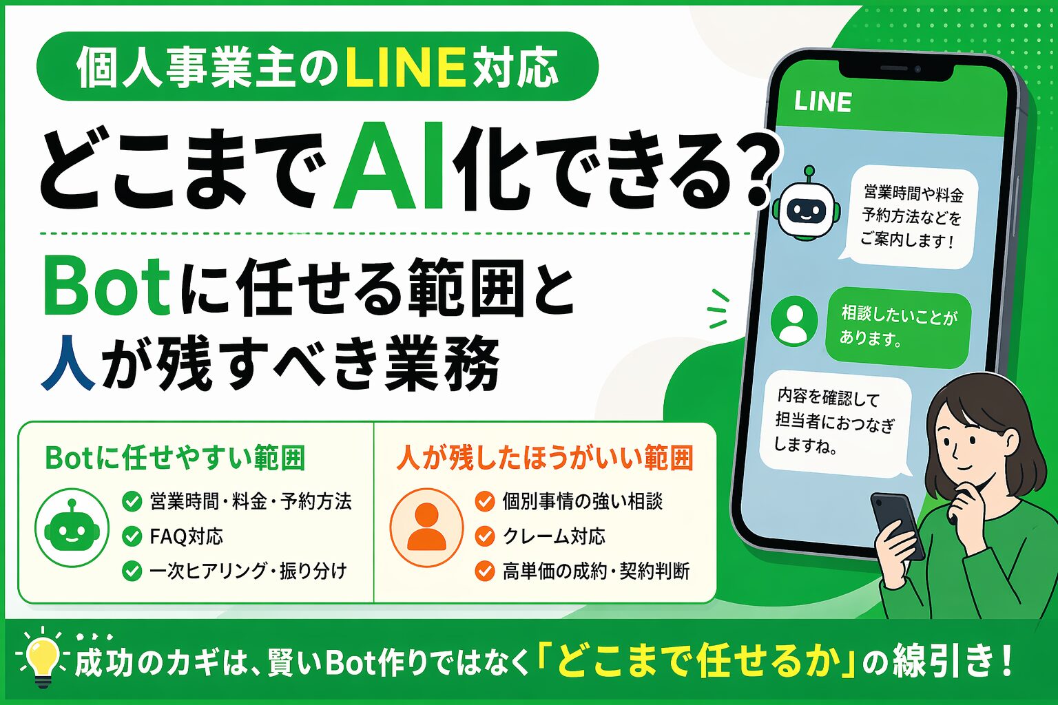 個人事業主のLINE対応は、全部をAI化するより、一次対応だけを整理する形で始めるのが現実的です。